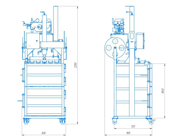 Принцип роботи виробу заснований на завантаженні сировини в бункер та його послідовному стисканні за допомогою гідравлічних циліндрів. Робота з виробом не потребує спеціальних навичок. У комплектацію обладнання входить все необхідне початку роботи.